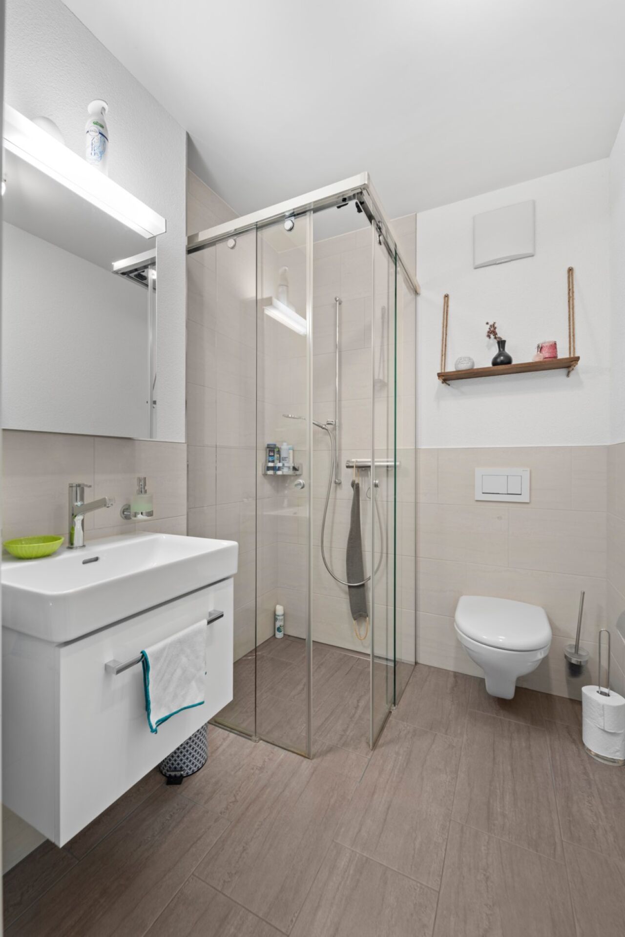 Neben einem grossen Eltern-Schlafzimmer verfügt die Wohnung über ein weiteres Zimmer, welches als Kinder- und/oder Arbeitszimmer genutzt werden kann. Weiter verfügt die Wohnung über zwei stilvolle Badezimmer von denen eines mit Dusche, das andere mit Badewanne ausgestattet sind. Für ausreichend Stauraum ist ebenfalls bestens gesorgt. Ein in der Wohnung integriertes Reduit und der separate Keller welcher sich auf der gleichen Etage befindet bieten viel Platz.